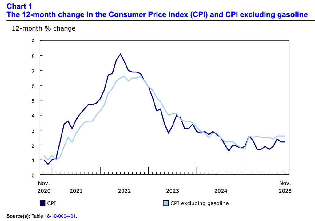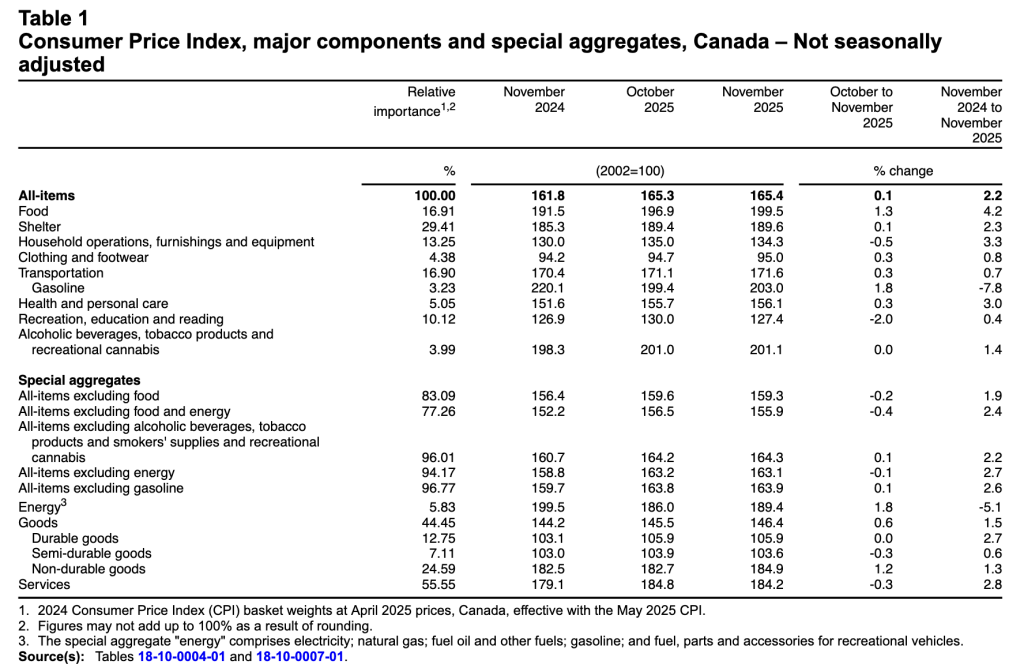 Canada’s consumer price index (CPI) increased by 2.2% year over year (Y-o-Y) in November, matching the 2.2% Y-o-Y rise in October. Statistics Canada (StatsCan) published the data at 8:30 a.m. ET on December 15, 2025, via The Daily report. On a monthly basis, the CPI rose by 0.1%, and the Bank of Canada (BoC) should be pleased that the pricing pressures remain until control.