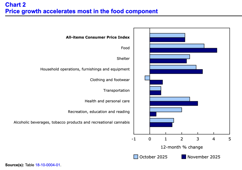 Sector performance was mixed in November, with food showcasing the highest Y-o-Y rate of change, while the shelter component moderated further.