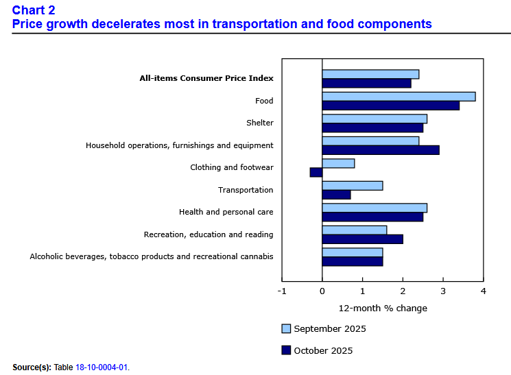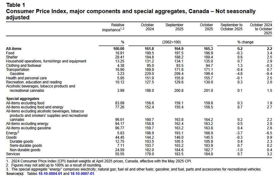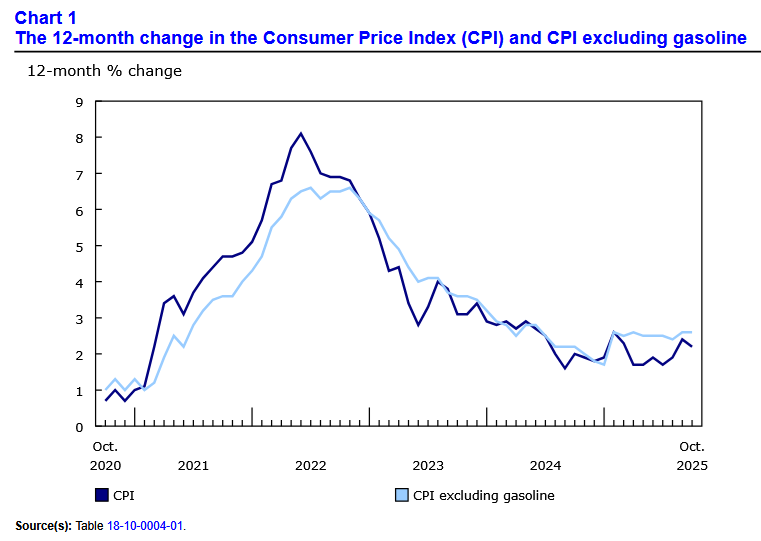 Canada’s consumer price index (CPI) increased by 2.2% year over year (Y-o-Y) in October, down from 2.4% Y-o-Y in September. Statistics Canada (StatsCan) published the data at 8:30 a.m. ET on November 17, 2025, via The Daily report. On a monthly basis, the CPI rose by 0.2%, and the relatively mild metrics reinforced the disinflationary trends that have occurred over the last few years.