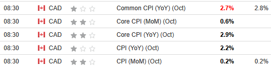 Core measures of the CPI retreated in October, with the CPI-common index holding at +2.7% (from +2.7%), while the CPI-median fell to +2.9% (from +3.1%), and the CPI-trim fell to +3.0% (from +3.1%). These measures exclude the impacts of food and energy, and the BoC places heavy emphasis on core measures because they provide a smoothed distribution of overall inflation.