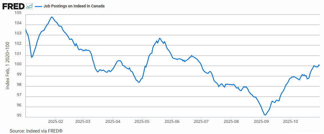 “Canada’s service sector expanded in October for the first time in 2025…. The Business Activity Index moved above the critical 50.0 no-change mark for the first time since November 2024. At 50.5, the index was notably higher than September’s 46.3 and well above readings seen during the spring.”